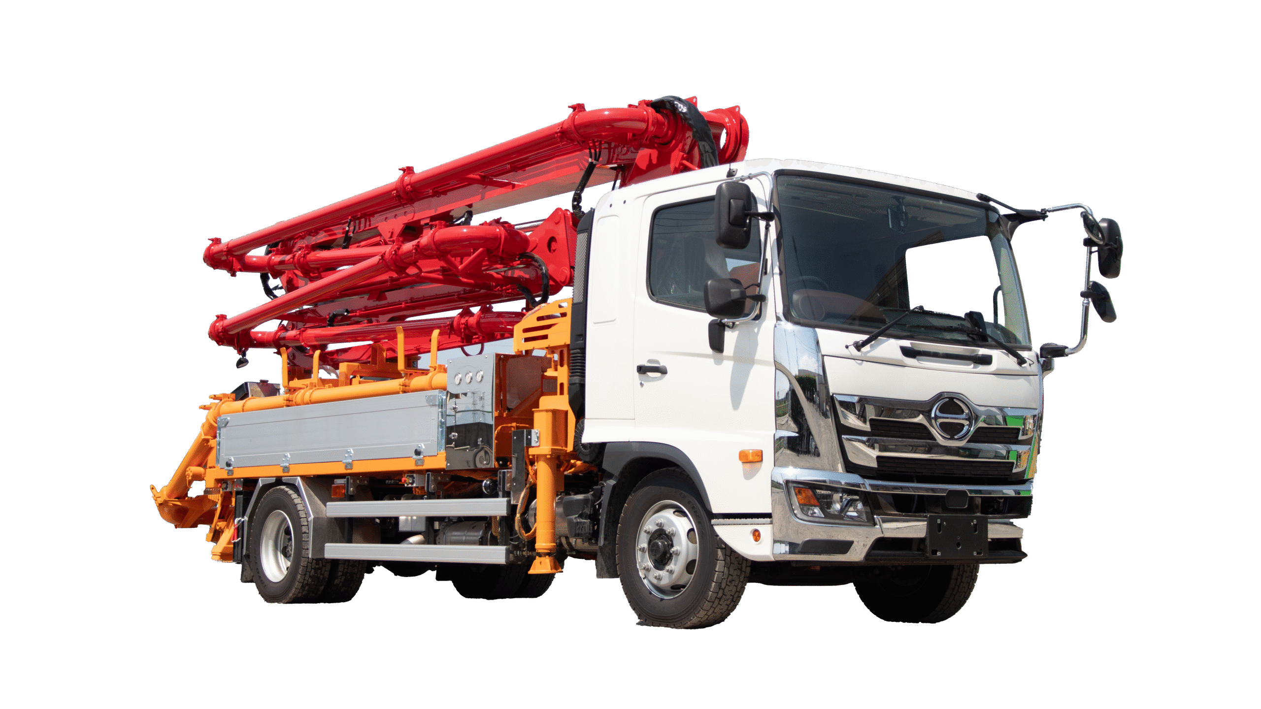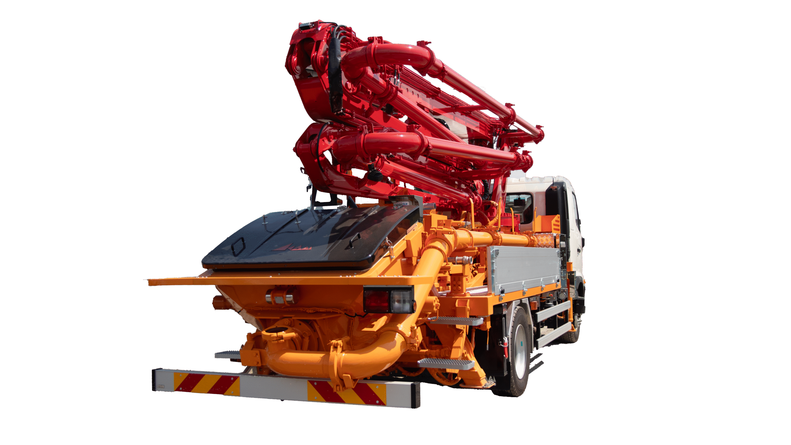 赤城産業のAKAGI 4Z22Hは、14.5トン車体に22mブームを搭載した、国内ではこれまで存在しなかった新しいサイズのコンクリートポンプ車です。従来の17〜21mクラスより一回り大きく、それでいて取り回しに優れ、都市部の狭い現場から広い建設現場まで幅広く対応します。