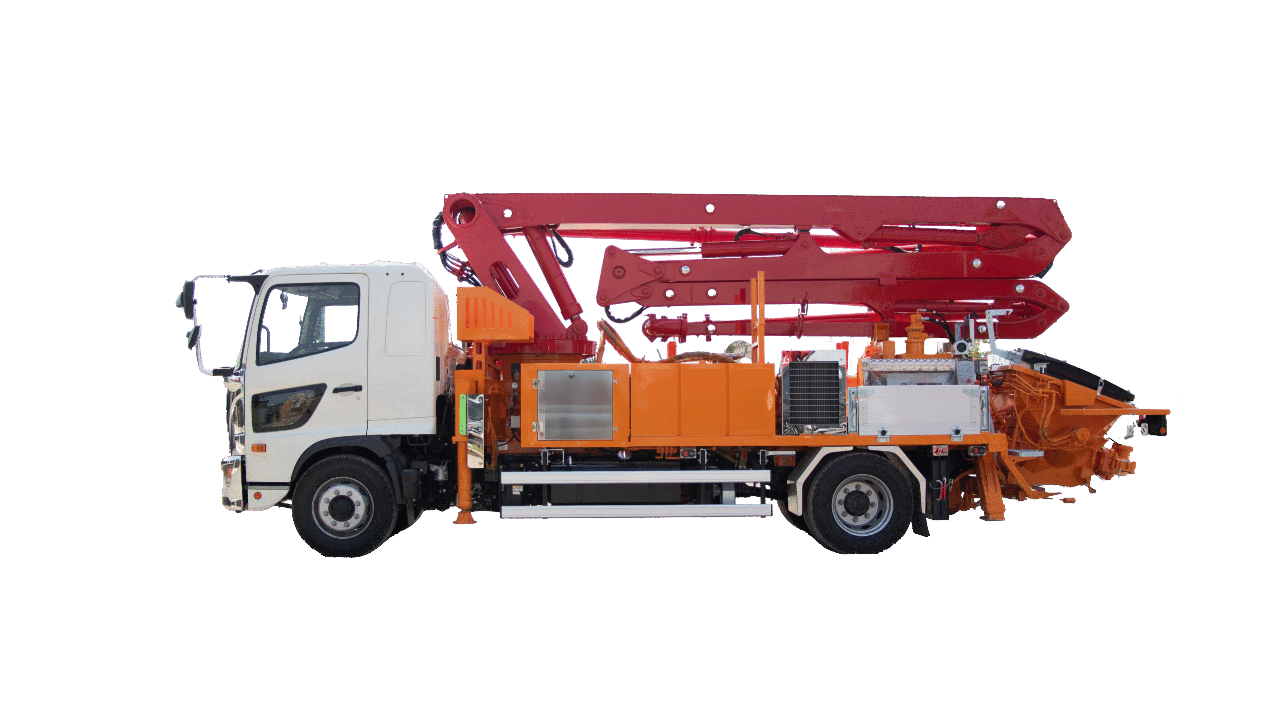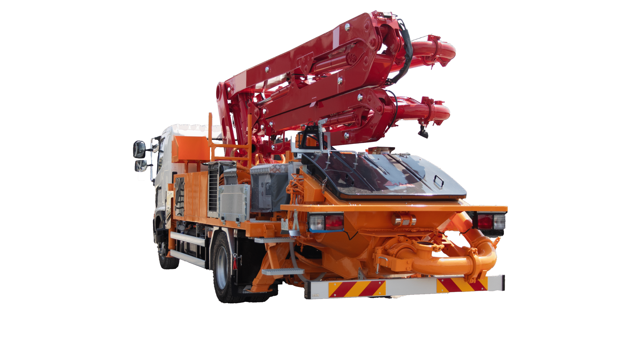 このサイズクラスでありながら、最大吐出圧129barを実現。中小規模現場だけでなく、大規模な施工現場でも十分に対応できる強力な圧送能力を誇ります。限られたサイズに収まる車体ながら、パワー面で妥協がない点が大きな特長です。